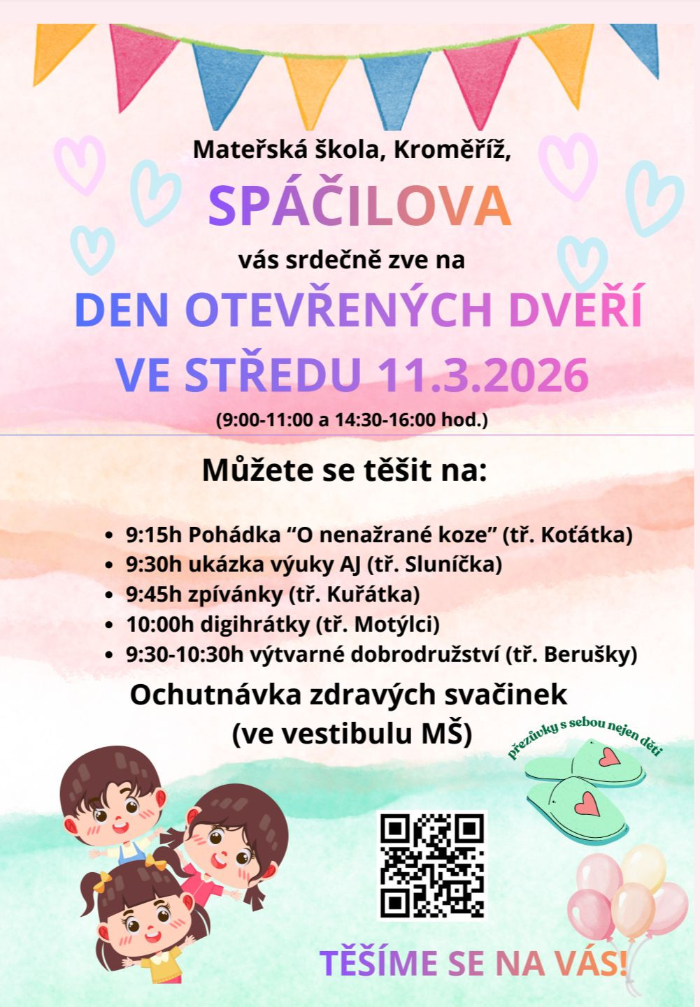 Den otevřených dveří v mateřské škole se přesouvá na středu 11. března 2026.