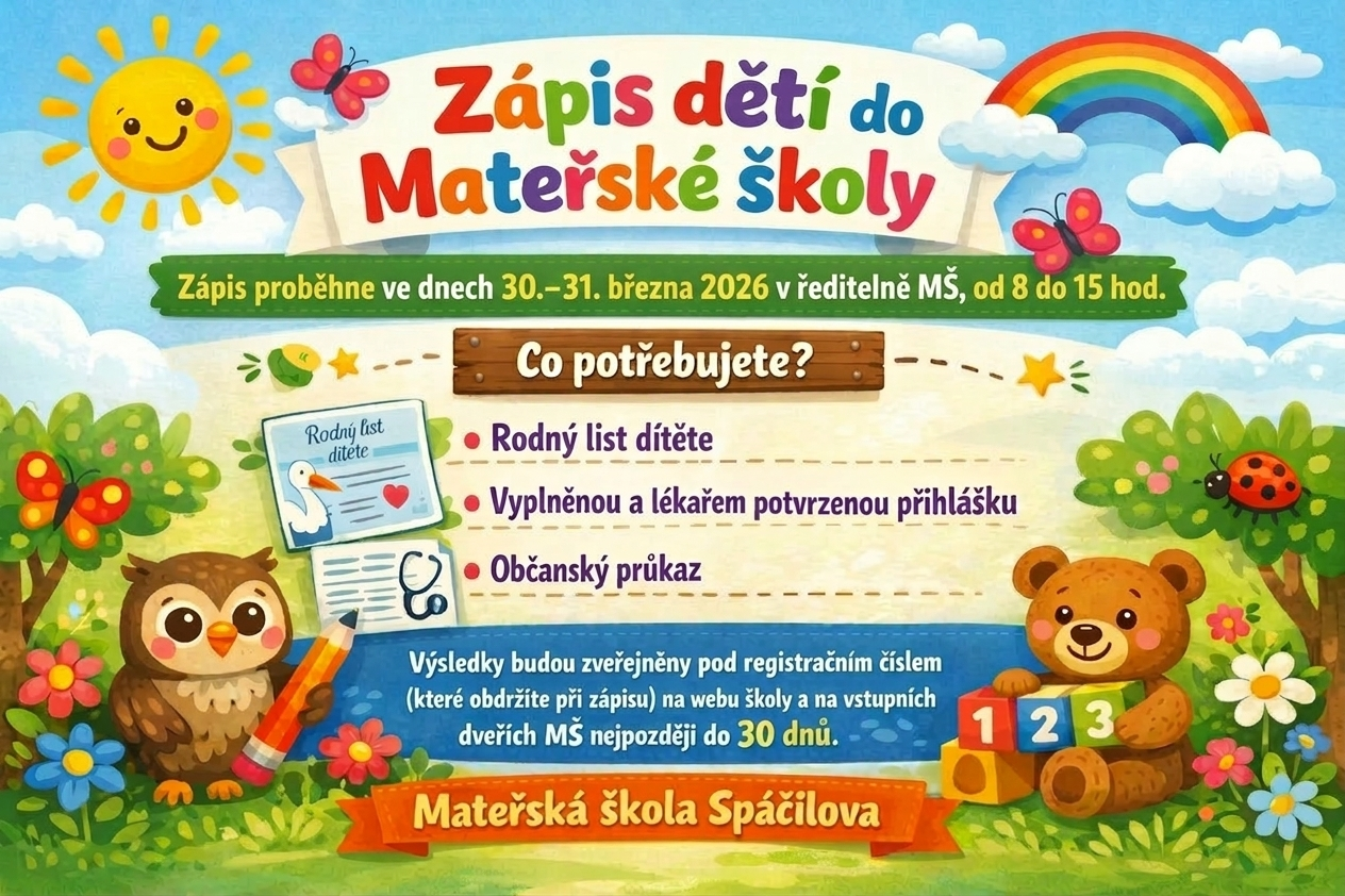 proběhne ve dnech 30. a 31. března 2026 od 8.00 hod. do 15.00 v ředitelně MŠ.